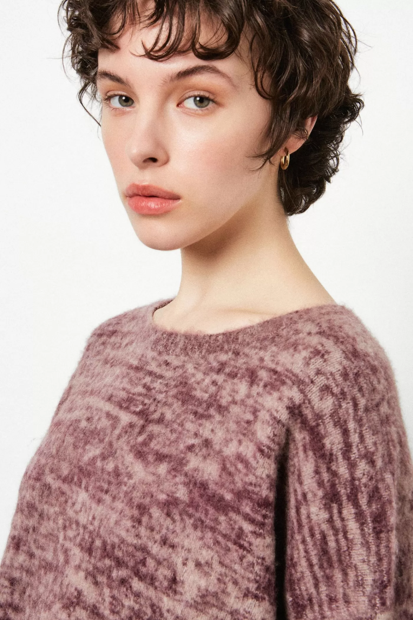 Overfit round neck sweater with ribbed edges in G.8 stocking stitch, made from soft moulin brushed cashmere.