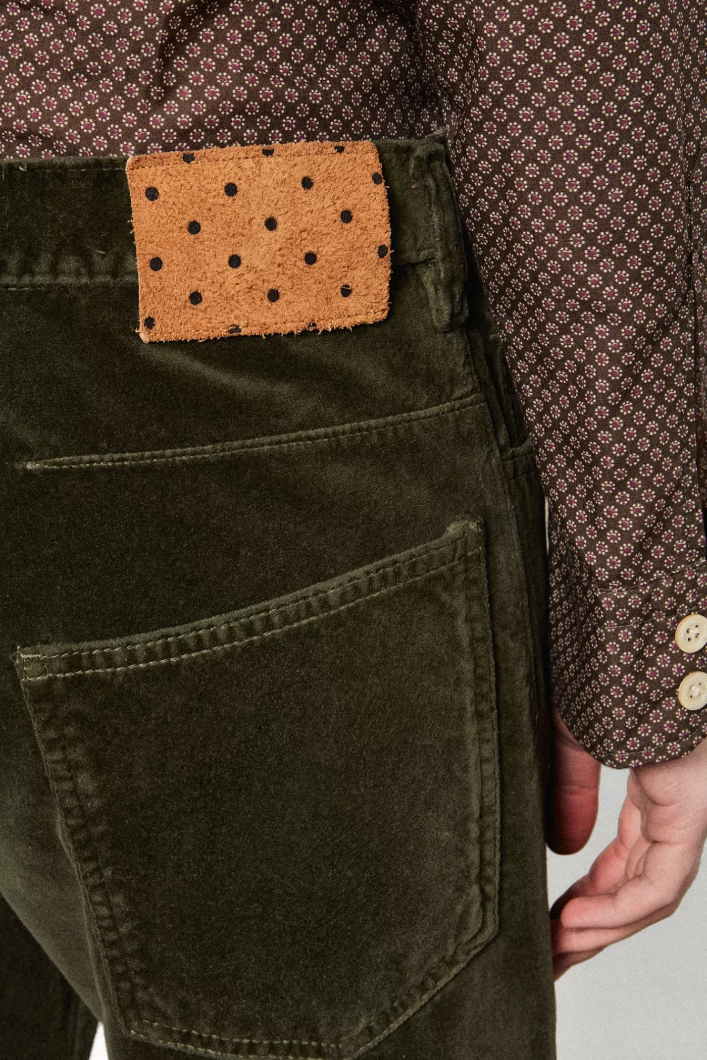 Five-pocket pants, straight leg, cropped at the ankle with frayed hem, relaxed fit, zip and button closure, made of pure cotton velvet.