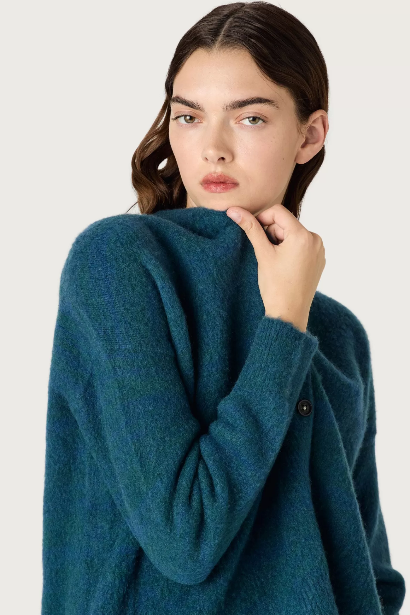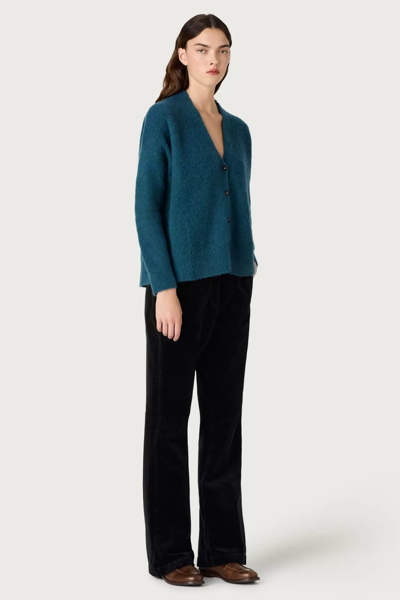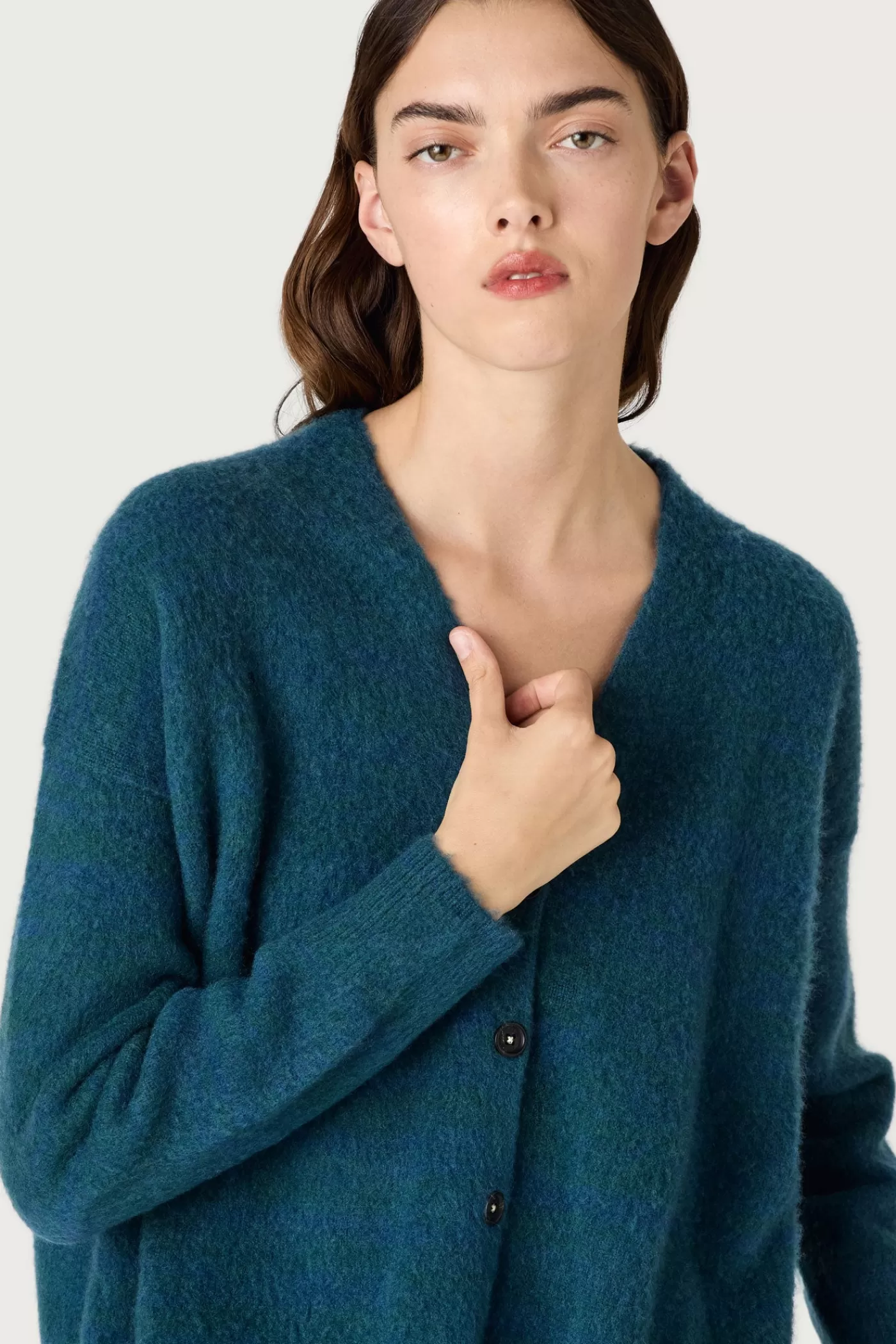 Overfit V-neck cardigan with five buttons and ribbed edges, made from soft moulin brushed cashmere in G.8 stocking stitch.