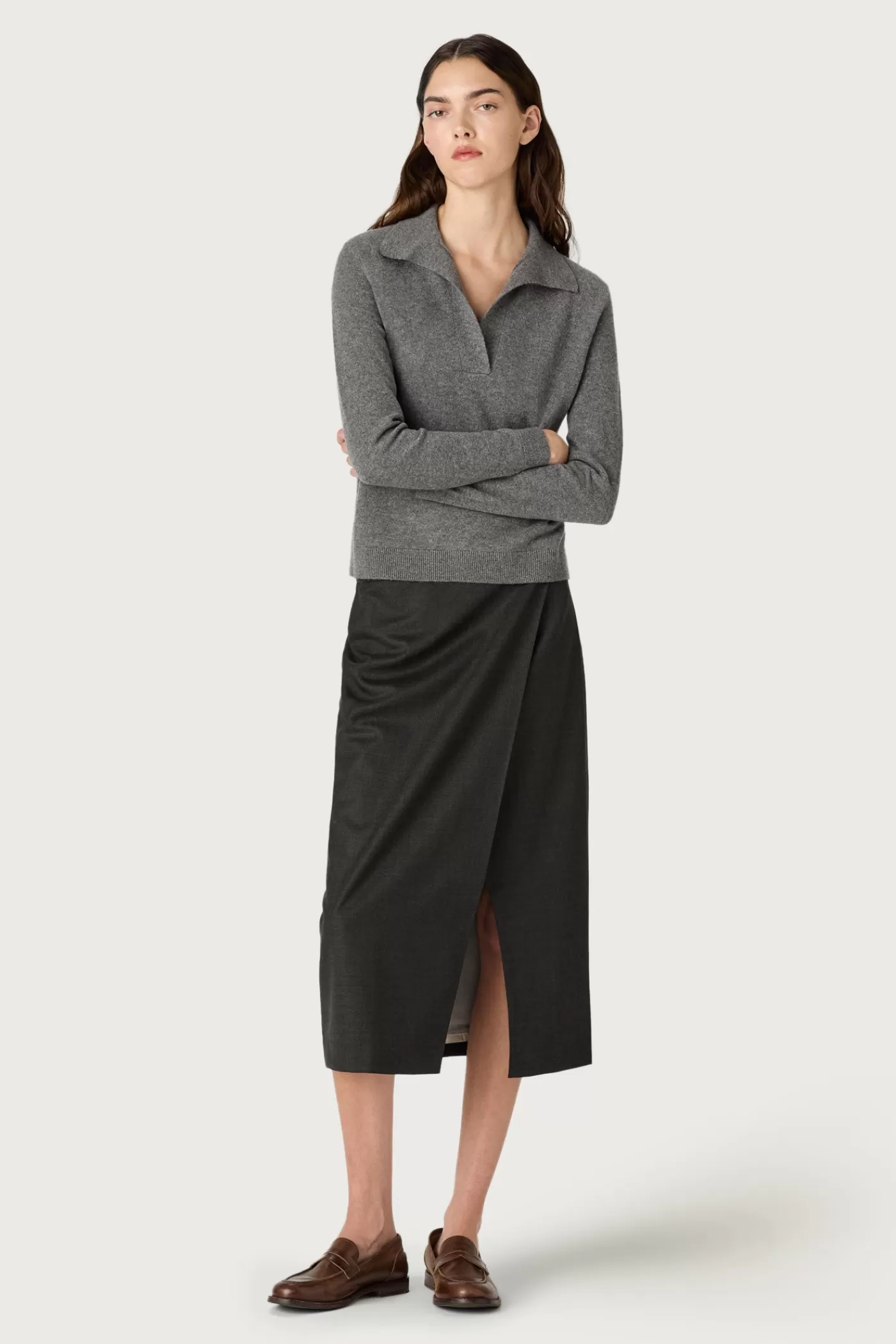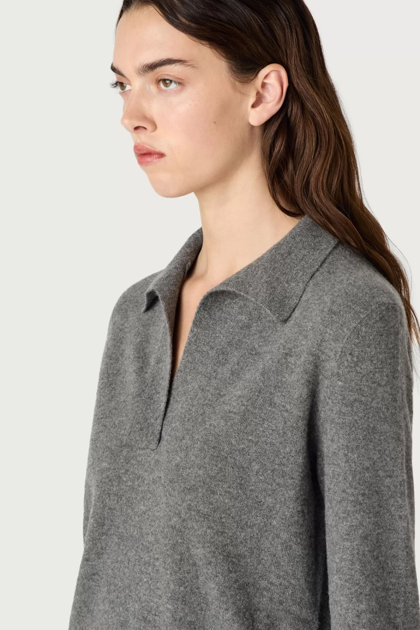 Ribbed knit polo with slightly flared sleeves, flat ribbed cuffs and hem, made of pure cashmere.