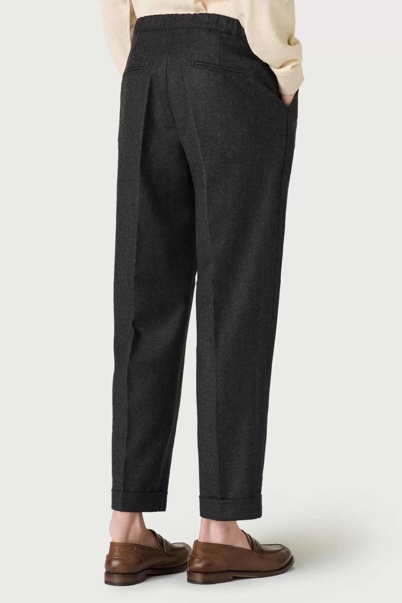 Trousers in cashmere-wool flannel