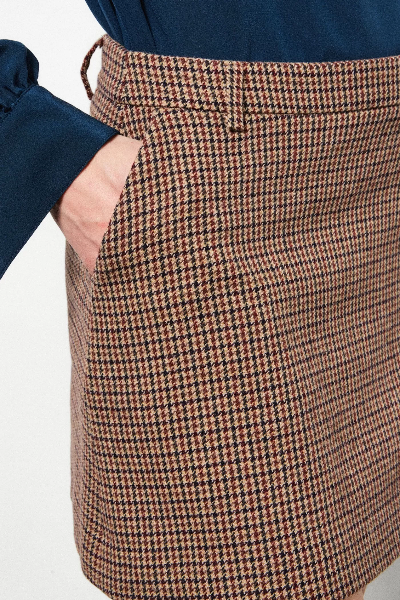 Mini skirt with side closure, two American pockets, made of wool blend houndstooth.