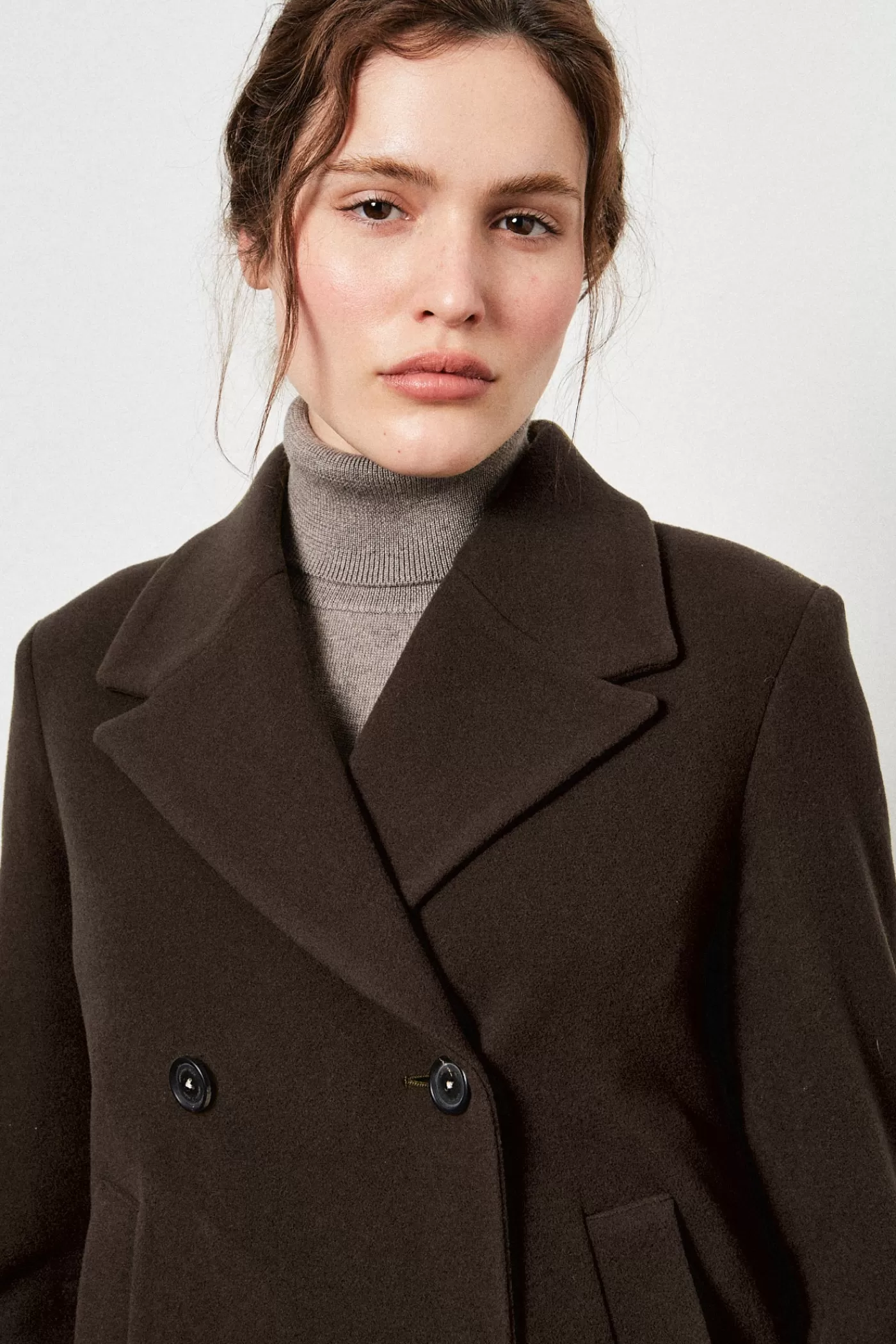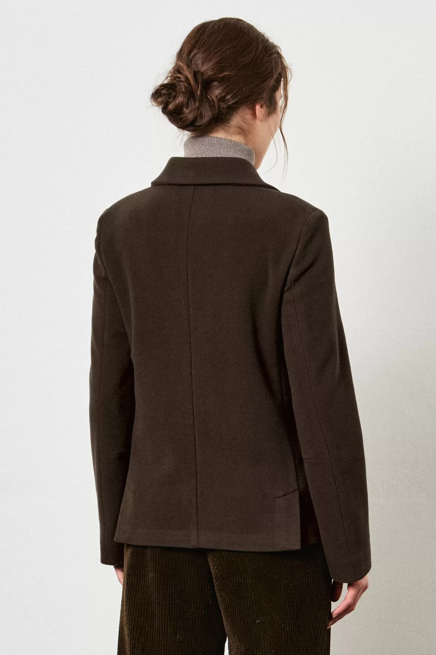 Deconstructed and unlined peacoat featuring two diagonal pockets and four genuine horn buttons, made of soft pure wool.