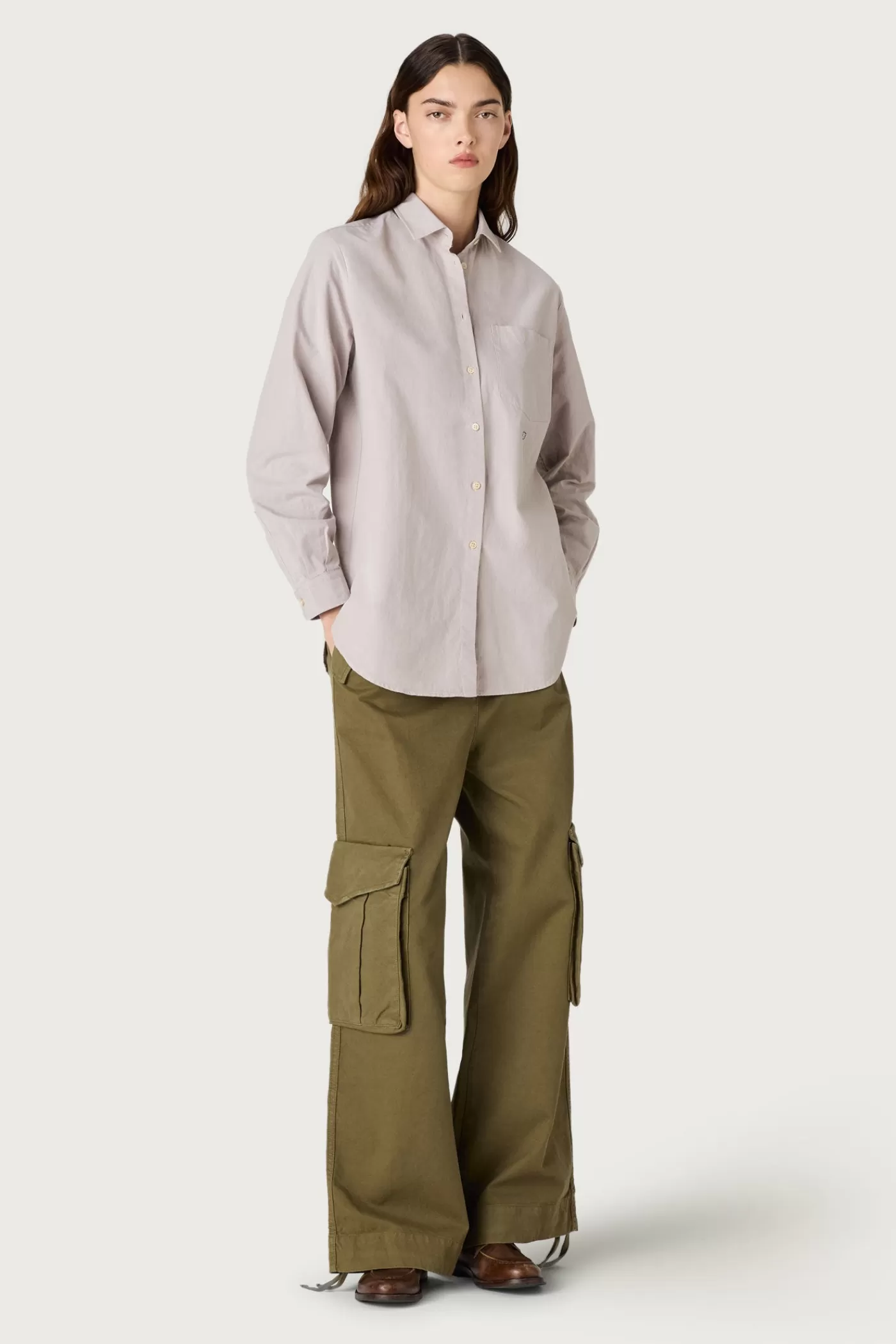 Loose-fit cargo trousers with wide legs and patch pockets. Made from cotton.