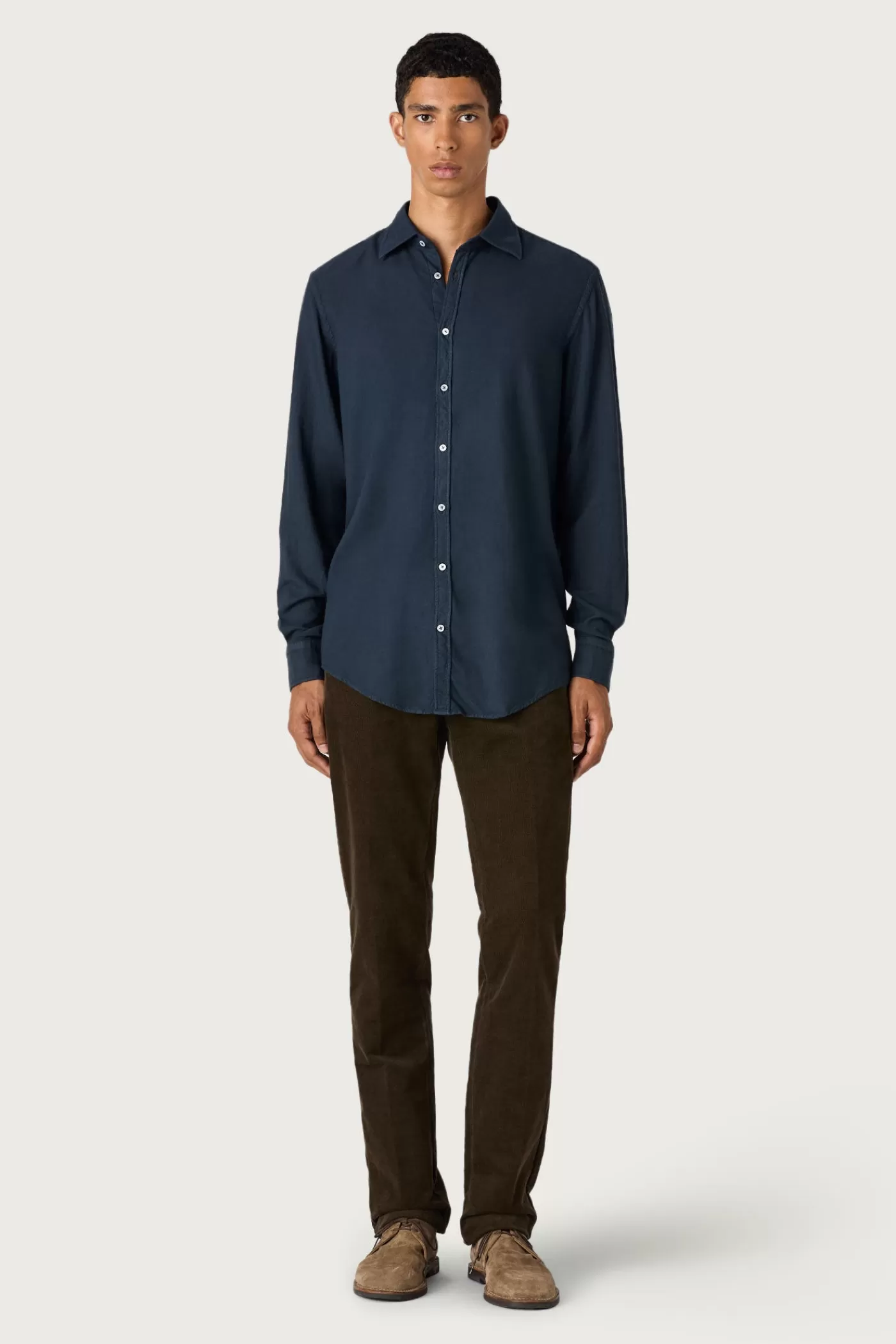 Classic wing collar shirt, front closure with mother-of-pearl buttons,detail of the inner bib in cotton voile and embroidered crest to apply initials,pointed back yoke and rounded hem, regular fit,made of viscose cotton vajella.