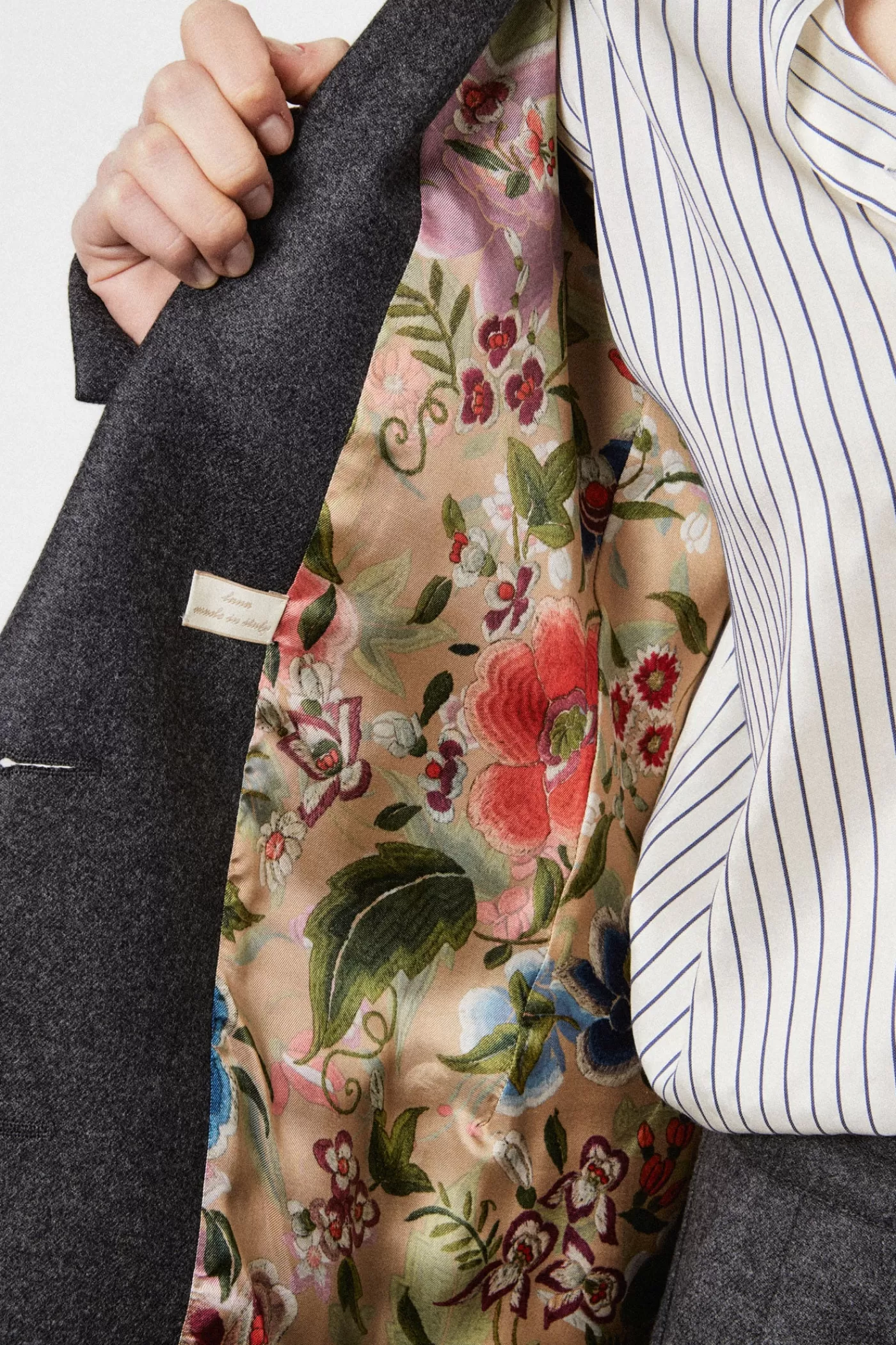 Single-breasted jacket with constructed and lined shoulders in exclusive pattern, featuring welt pockets, lance lapels, two genuine horn buttons, made of cashmere wool flannel.