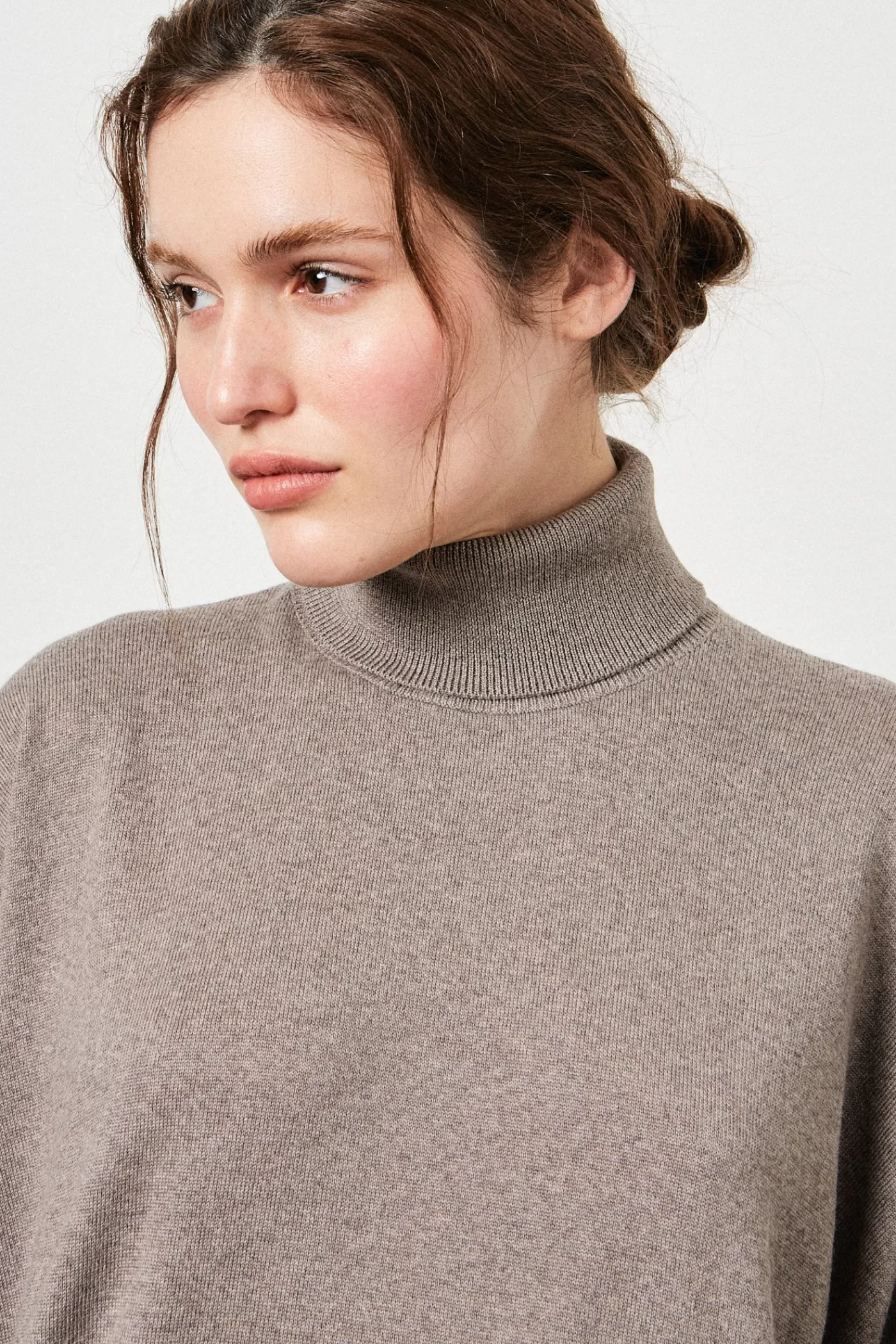 High-neck ribbed knit sweater, ribbed edges, dropped shoulders, over fit, made of extra-fine merino wool.