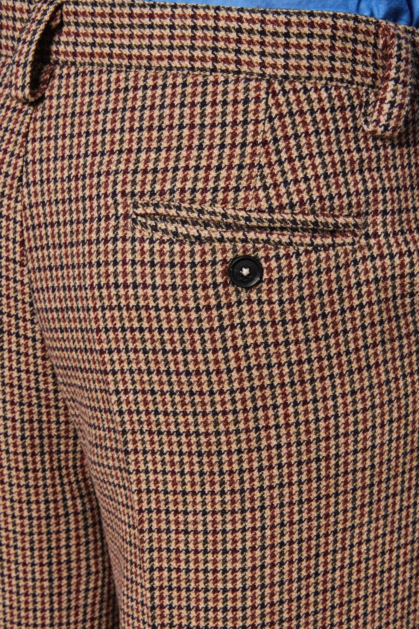 Boy pants with welt pockets, zip closure and side buckle, made of wool blend houndstooth.