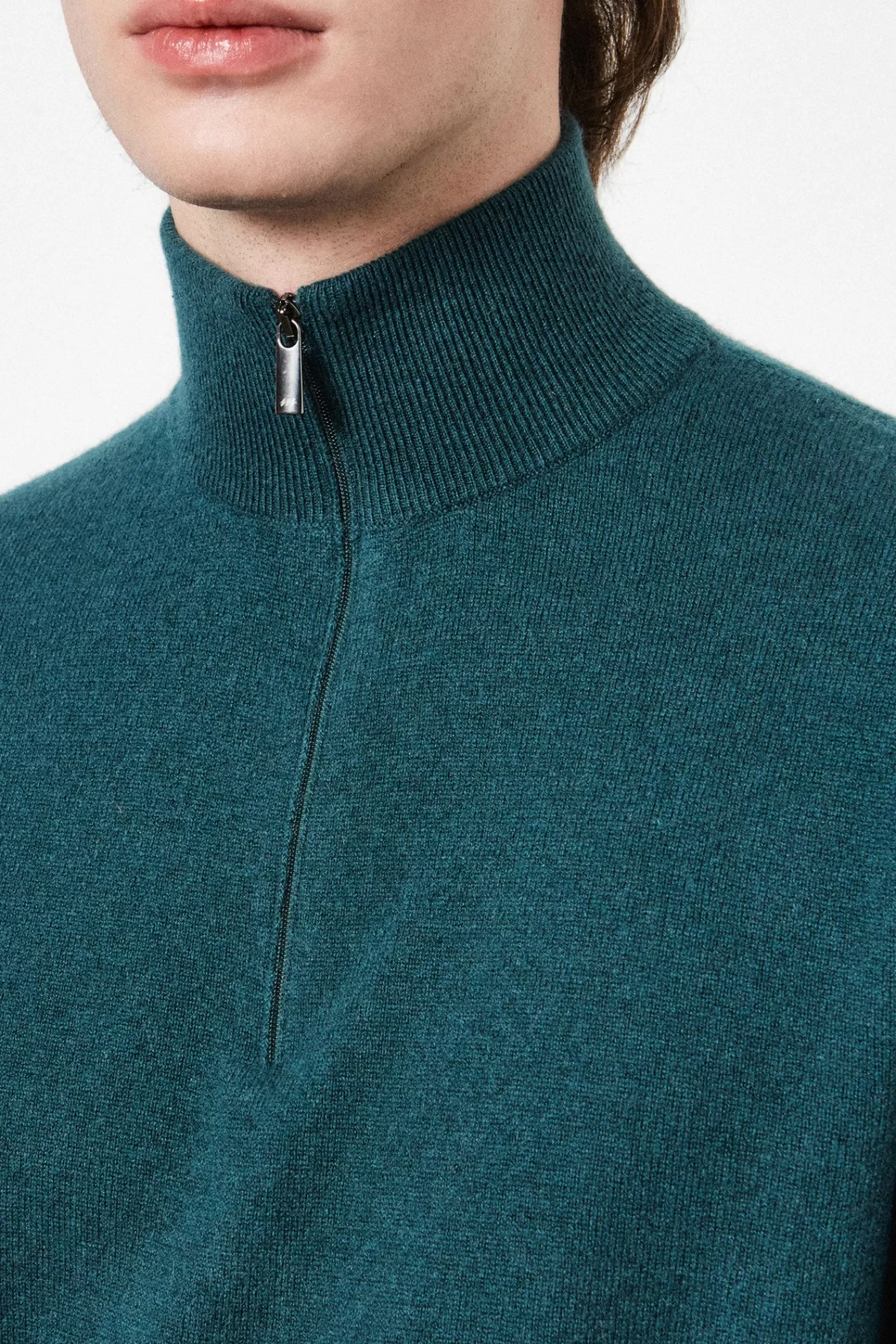 Half-zip pullover in ribbed knit, with ribbed borders, regular fit, made of dyed pure cashmere.