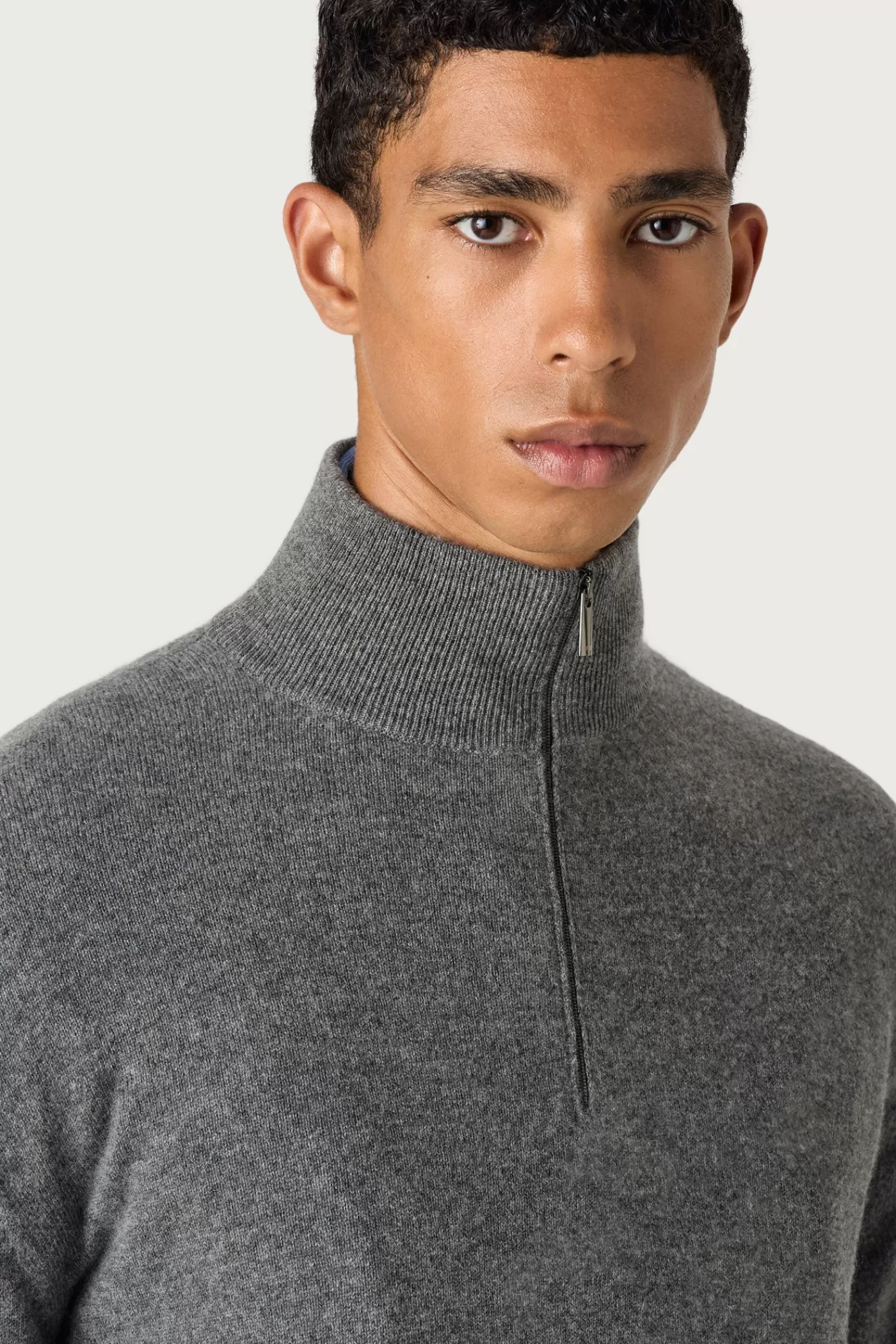 Half-zip pullover in ribbed knit, with ribbed borders, regular fit, made of dyed pure cashmere.