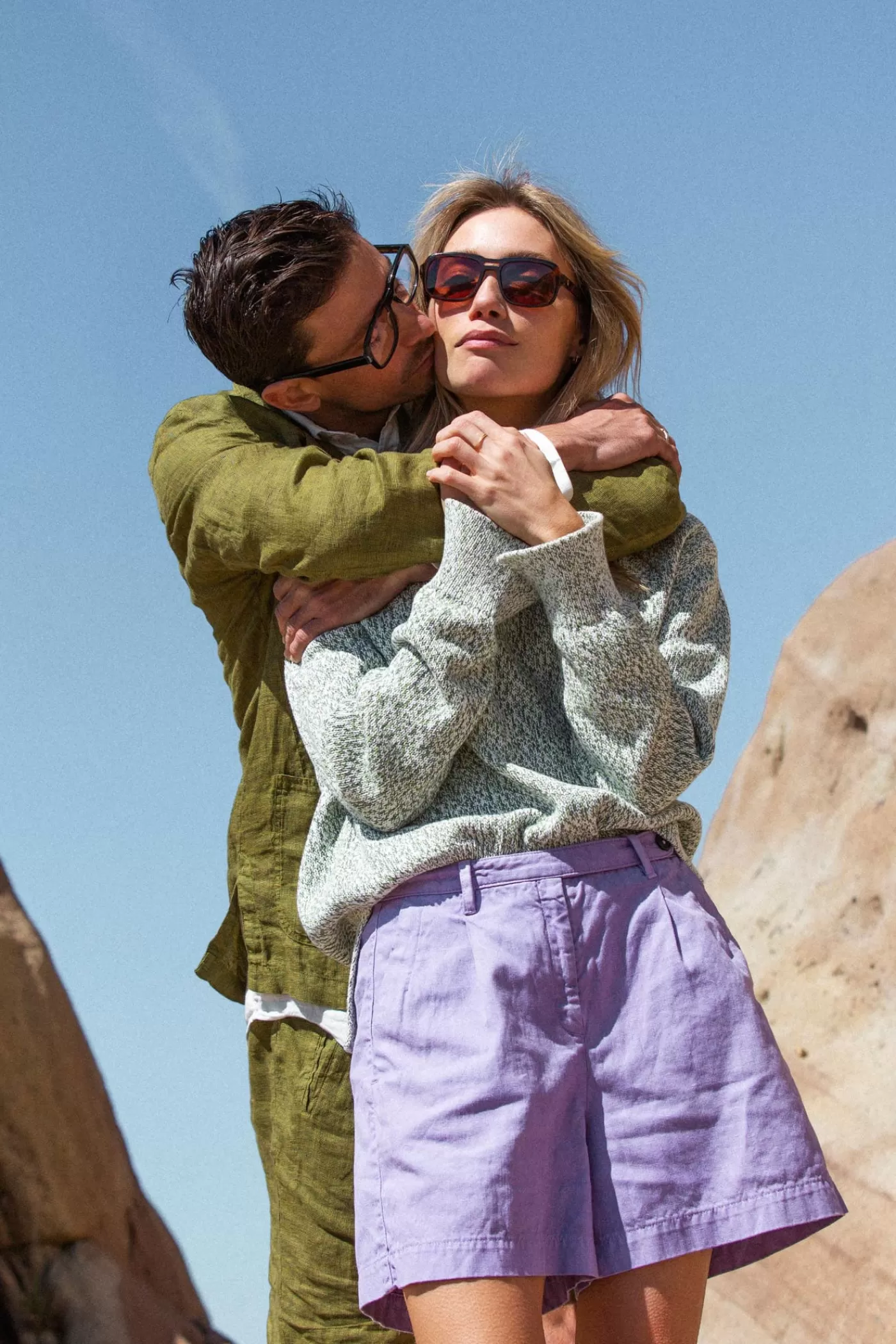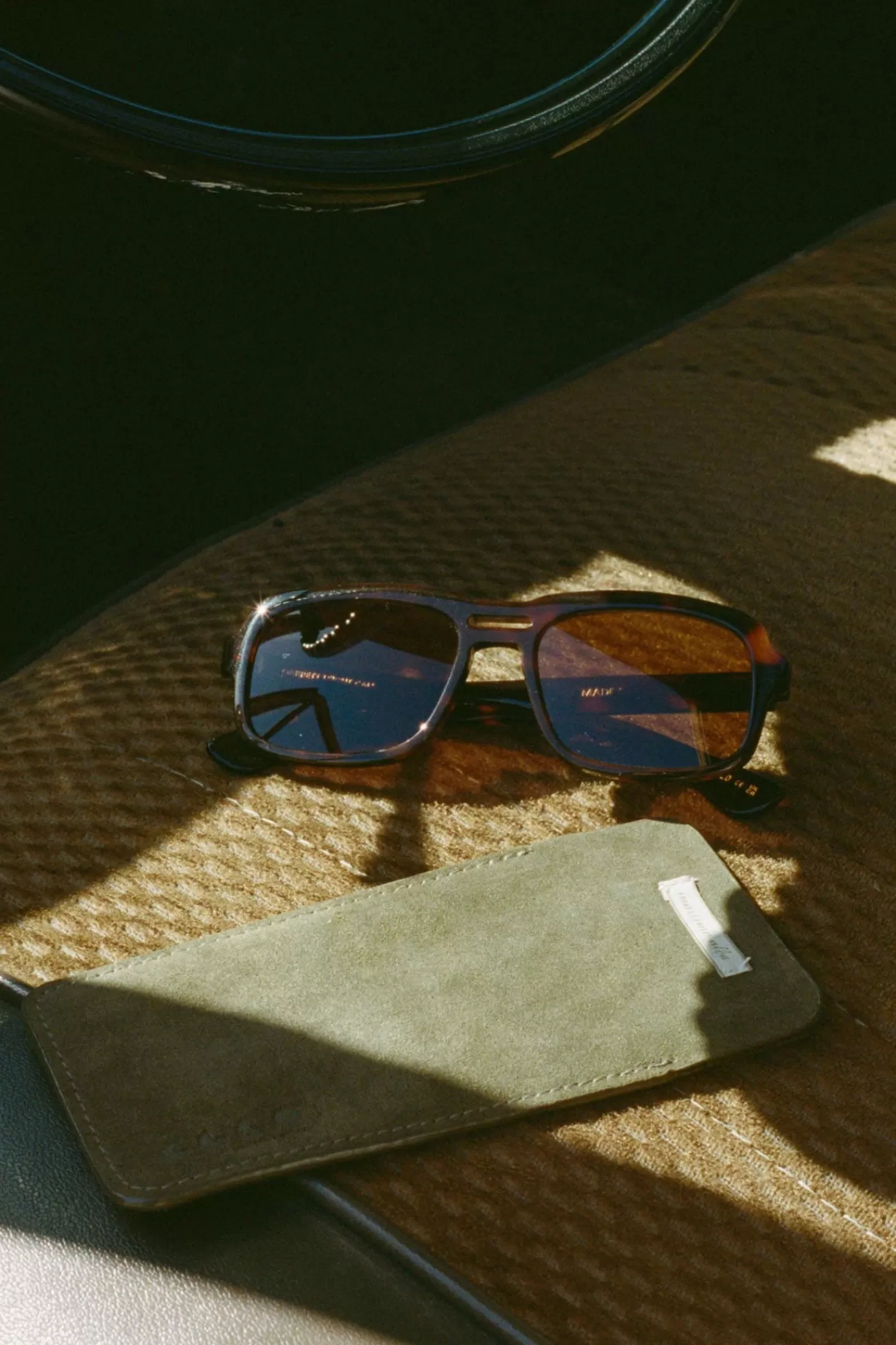 The Massimo Alba x GLCO frame features a unisex, 70s-inspired design that references the designer’s personal favorite shades. Crafted from acetate, the eyewear piece is distinguished by a double nose bridge and dark, tinted lenses that complement the frame’s color. A gold-toned clover detail on one of the item’s temples elevates and enhances its uniqueness. Made in America.The glasses are provided within a soft suede case with a Massimo Alba label and GLCO logo. The packaging also includes an exclusive microfiber cloth inspired by the brand’s iconic handkerchiefs.
