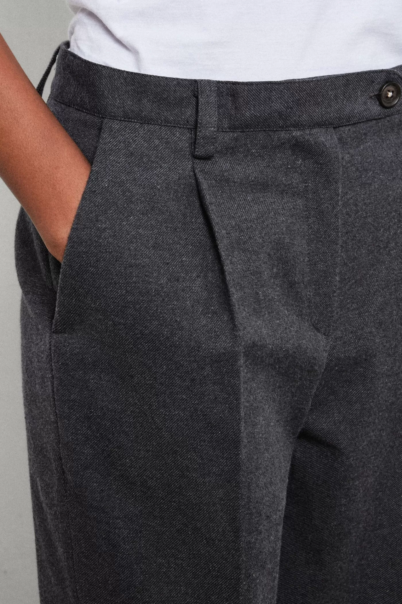 Soft-fit trousers, medium waist with front pleats. Made of cotton.