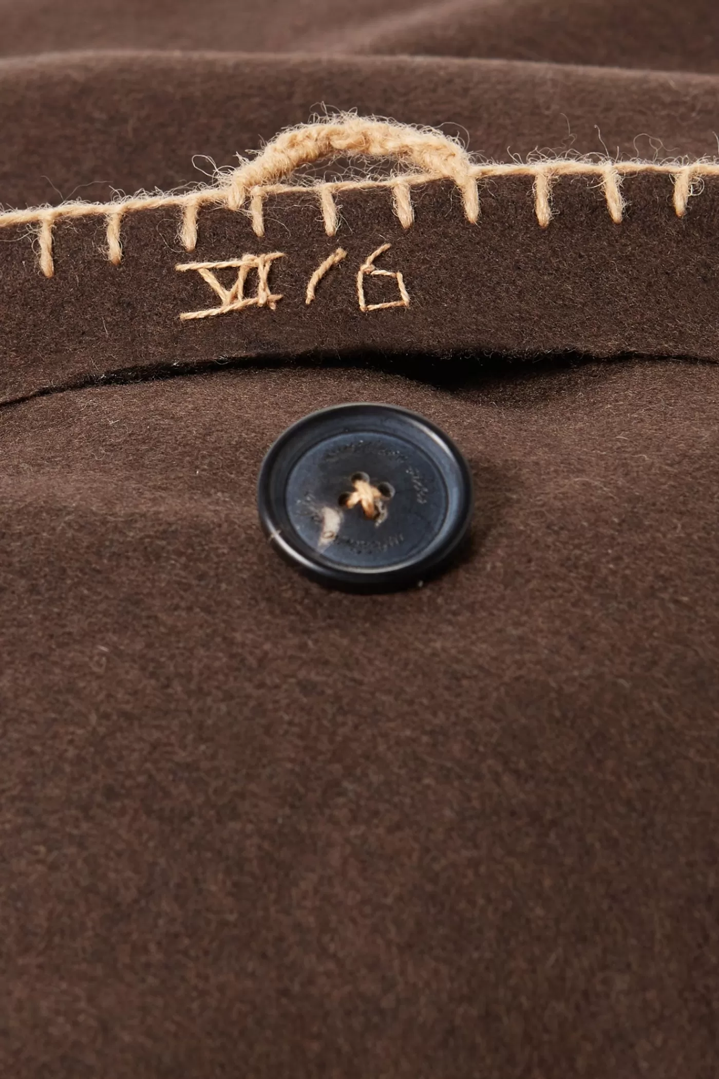Multicoloured cushion featuring a patchwork design hand-sewn with leftover fabrics from the Fall/Winter 2021 collection, hand-finished edges, a squared shape and rear closure with one branded, horn button. Numbered on its inside: VI / 6. Size: 50×50