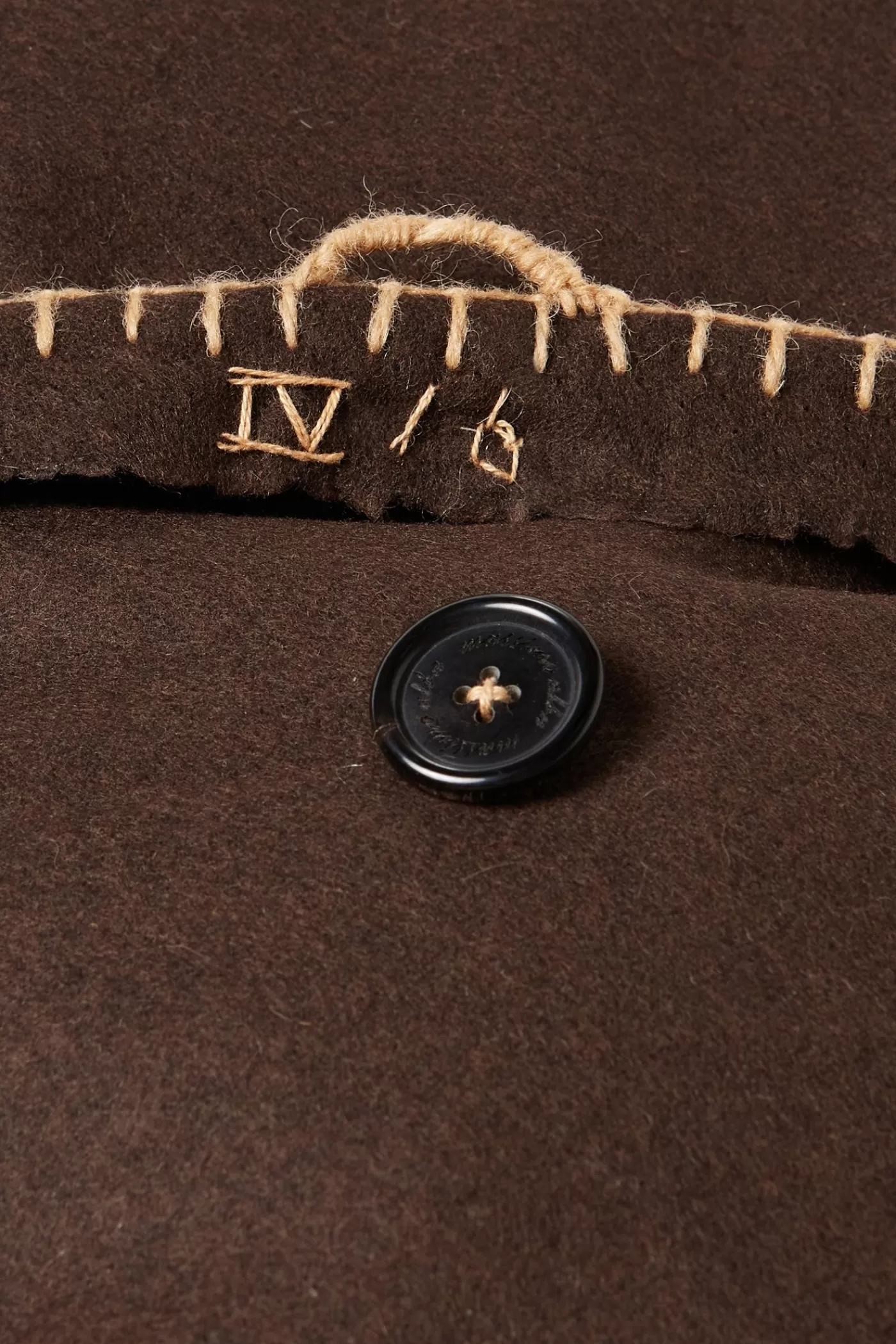 Multicoloured cushion featuring a patchwork design hand-sewn with leftover fabrics from the Fall/Winter 2021 collection, hand-finished edges, a squared shape and rear closure with one branded, horn button. Numbered on its inside: IV / 6. Size: 50×50