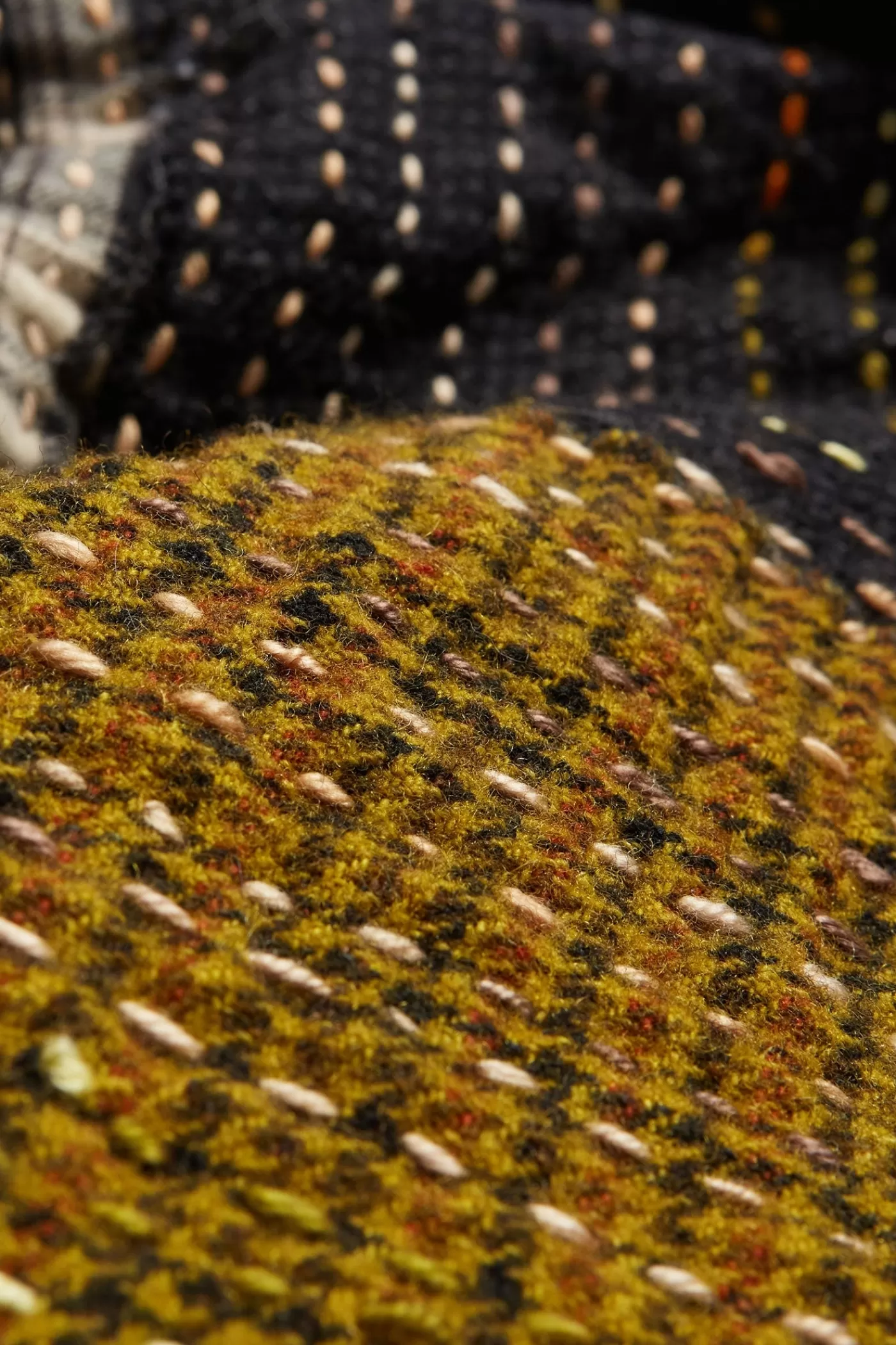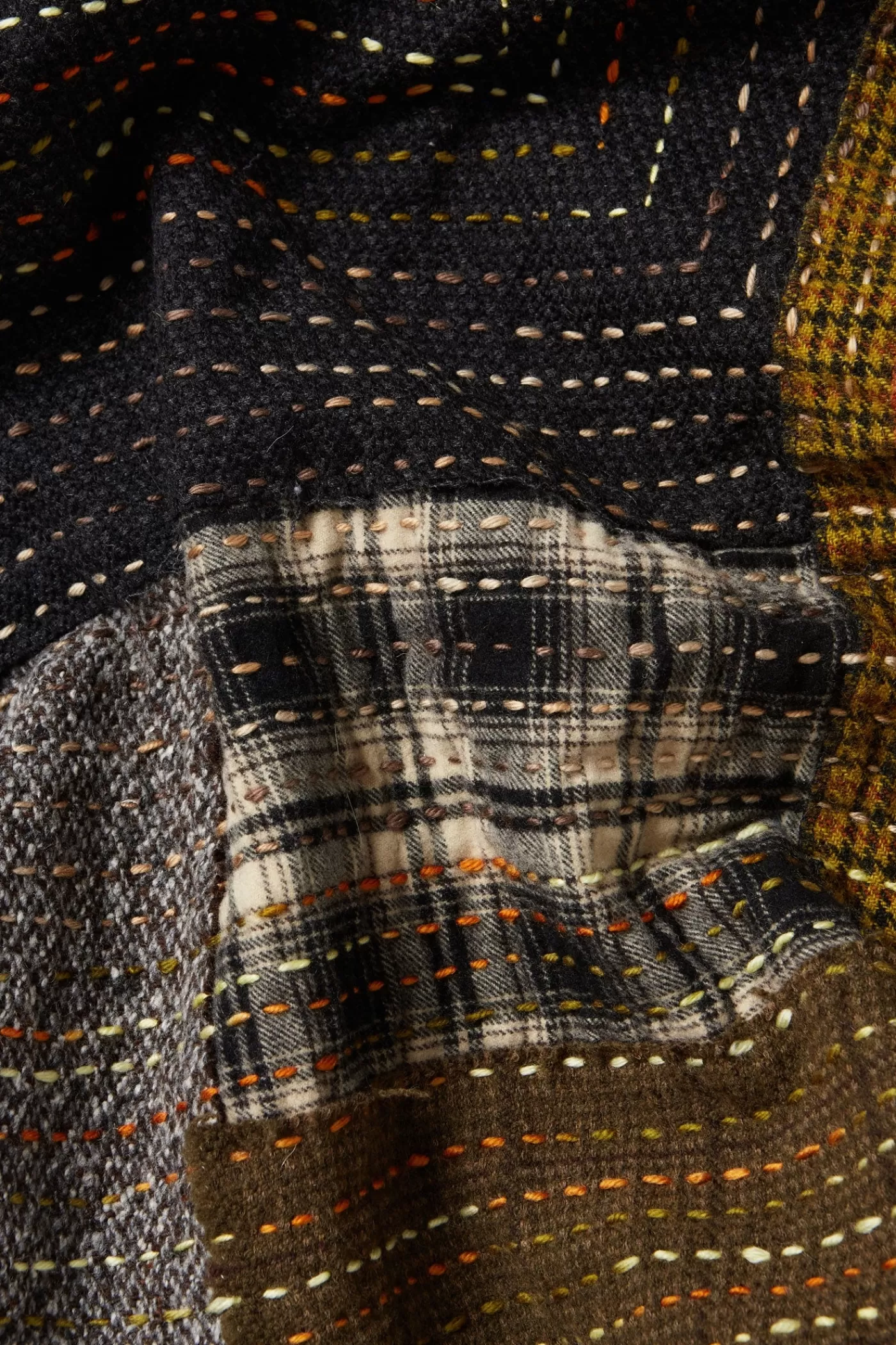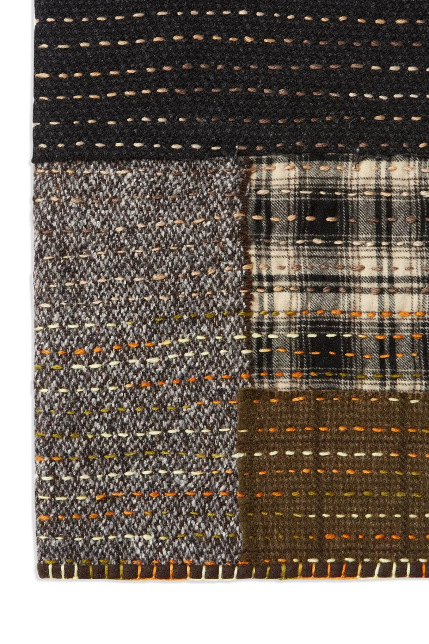 Multicoloured, double-face plaid featuring a patchwork design hand-sewn with leftover fabrics from the Fall/Winter 2021 collection, hand-finished edges and a squared shape. Numbered on its inside: I / 2 Size: 140×140.