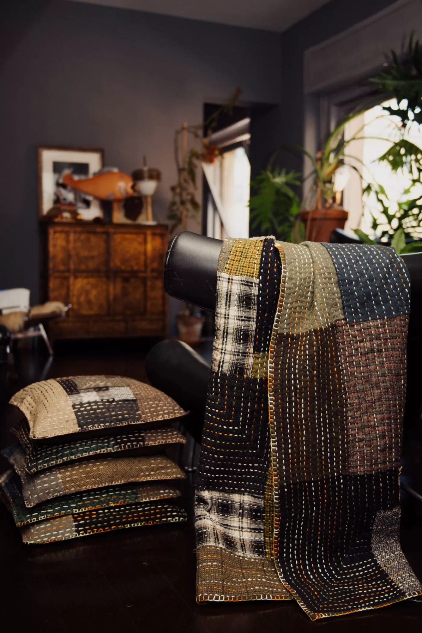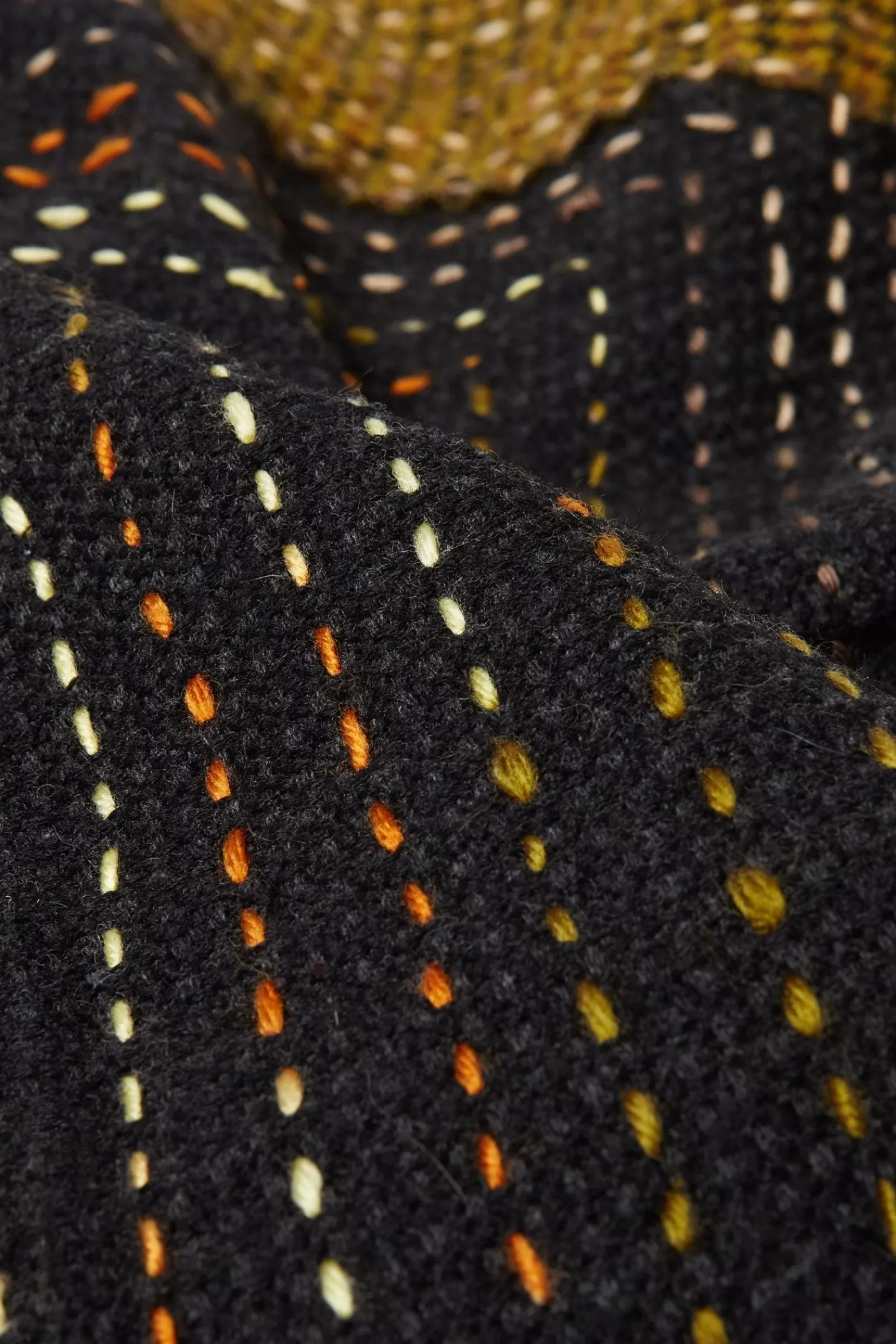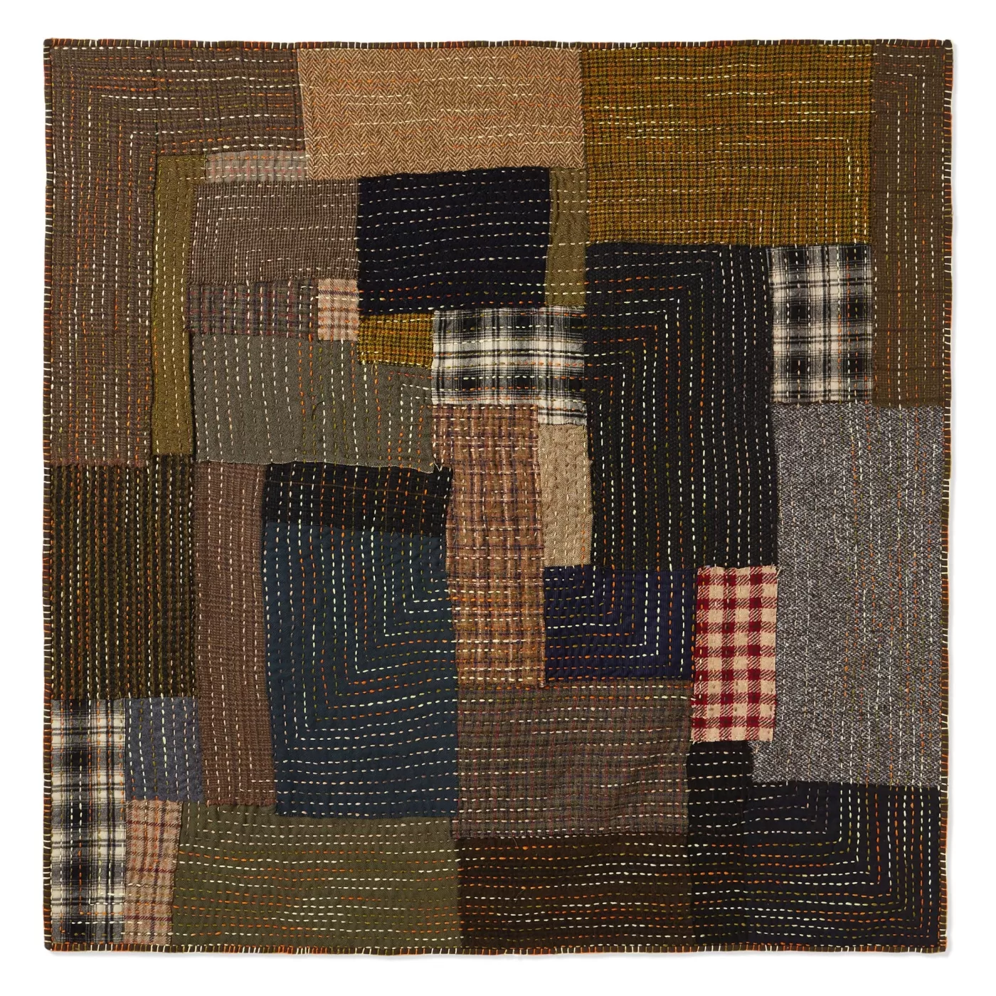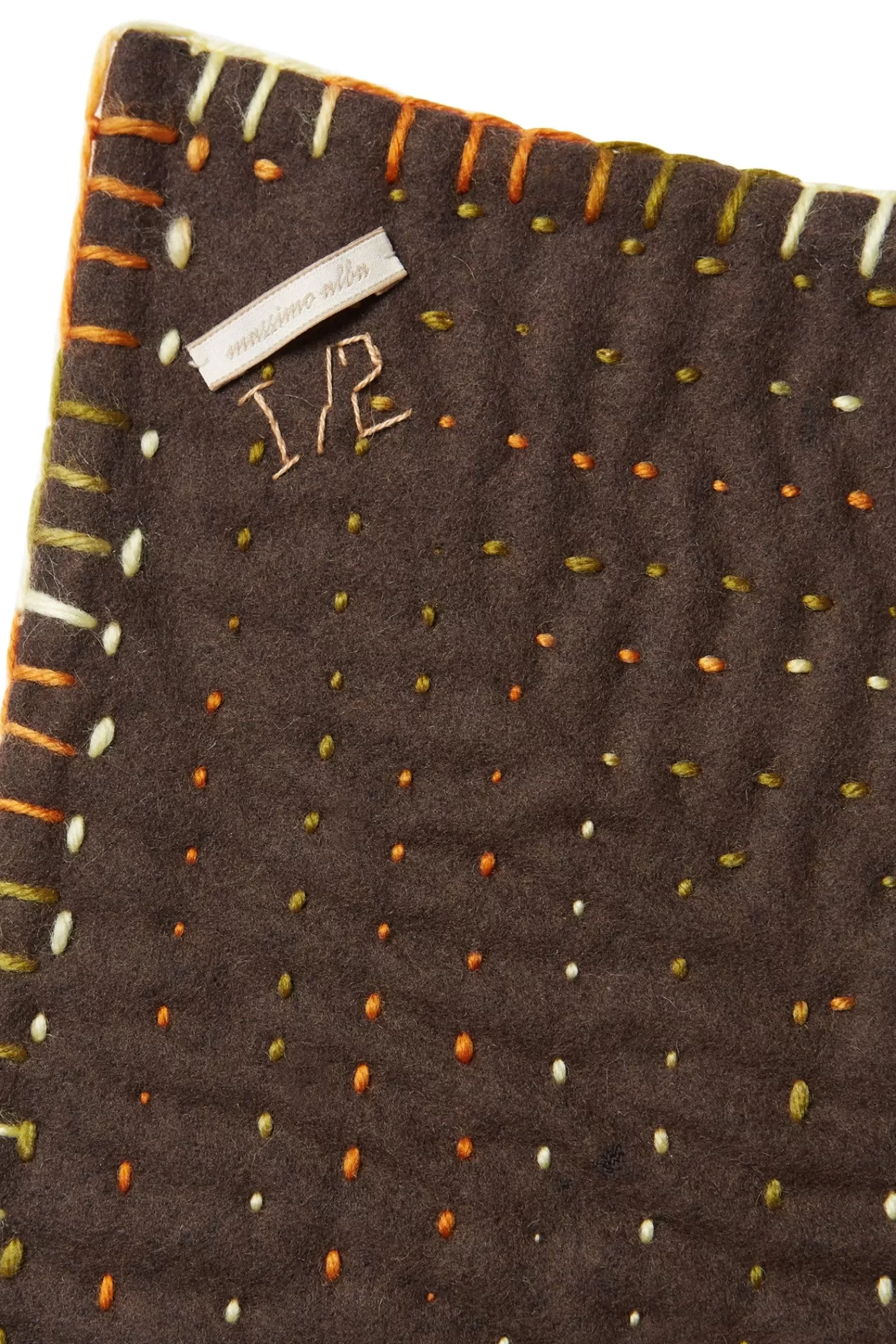 Multicoloured, double-face plaid featuring a patchwork design hand-sewn with leftover fabrics from the Fall/Winter 2021 collection, hand-finished edges and a squared shape. Numbered on its inside: I / 2 Size: 140×140.