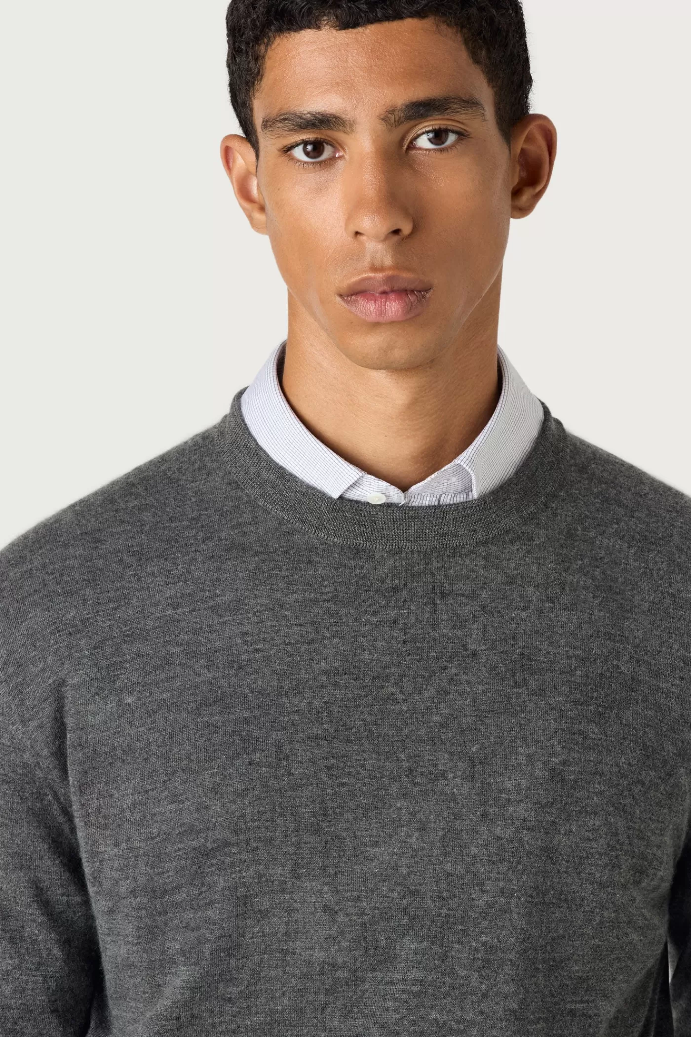 A regular fit crewneck sweater crafted from ultrafine worsted pure cashmere, knitted in G18 stocking stitch.