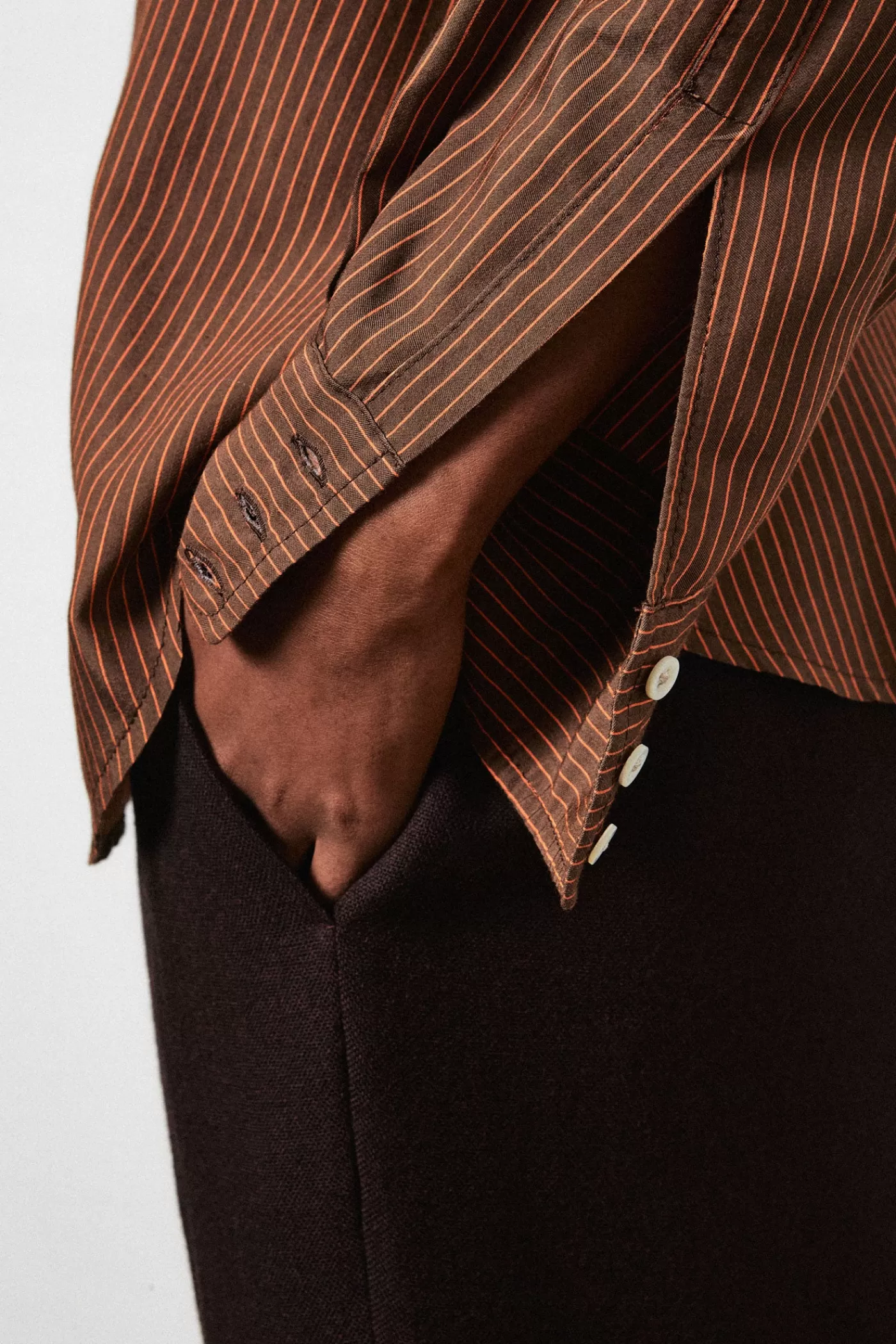 Comfort men’s cut shirt with pointed rear yoke. Made in viscose.