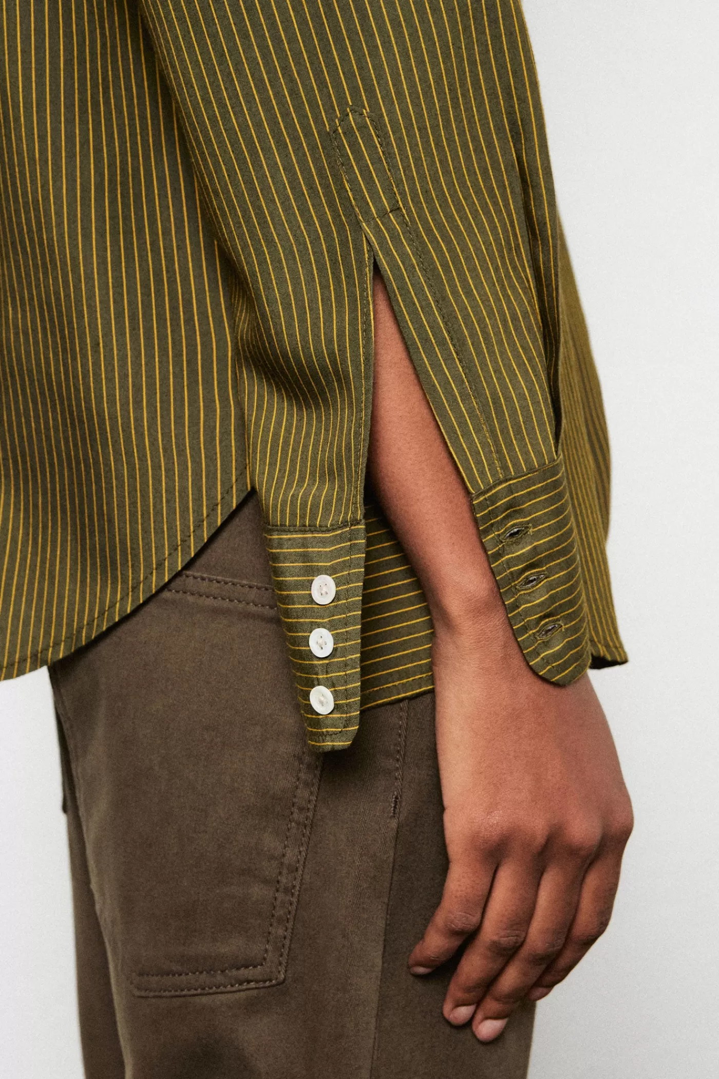 Comfort men’s cut shirt with pointed rear yoke. Made in viscose.