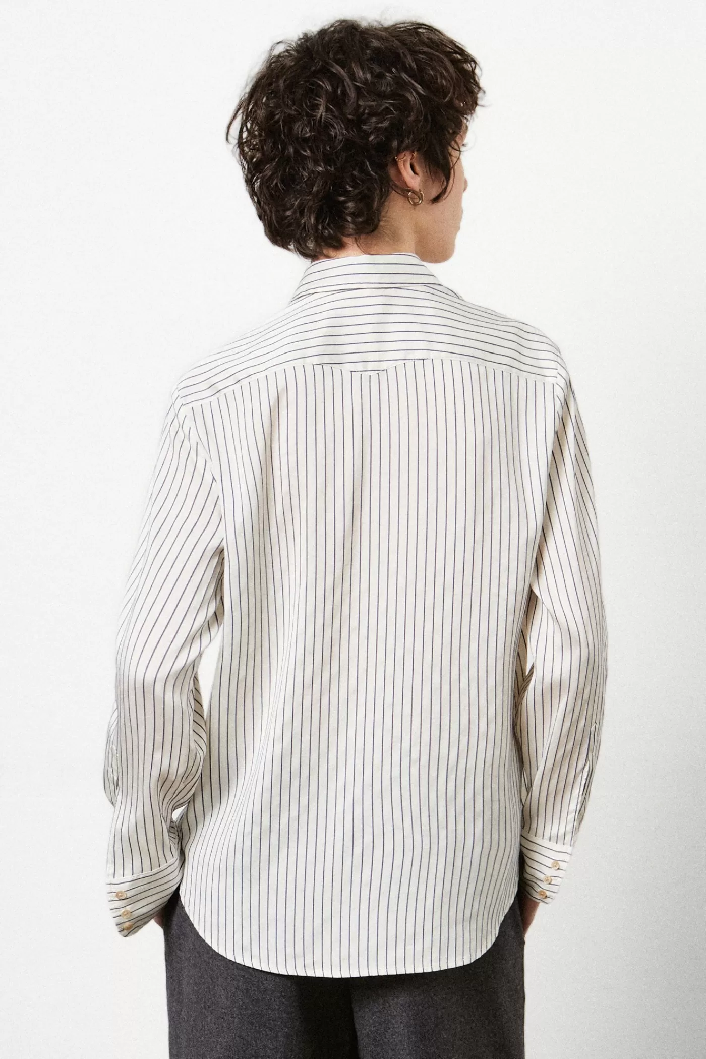 Shirt with pointed collar, soft fit, pointed yoke, without front placket, made of cotton silk.