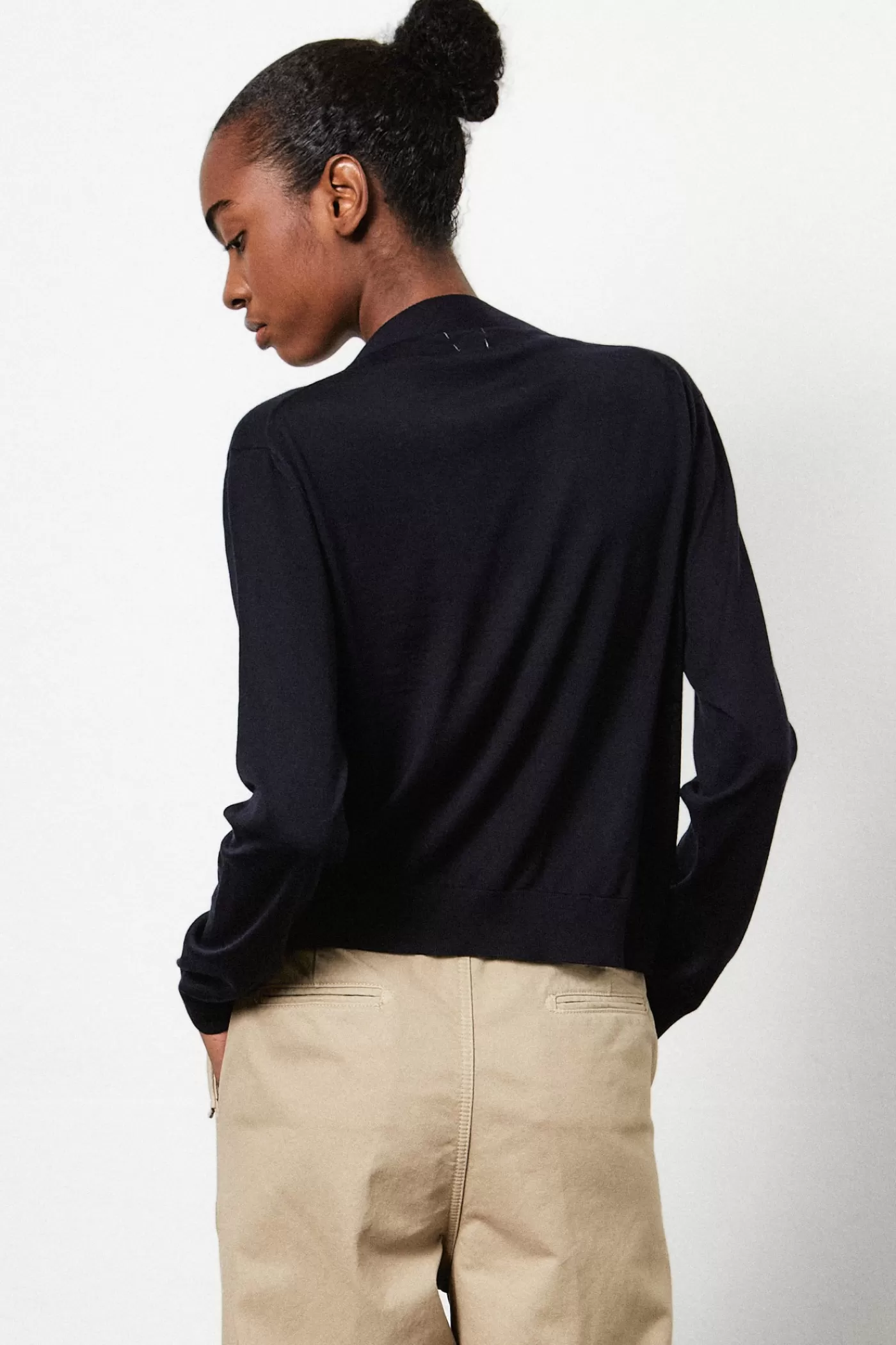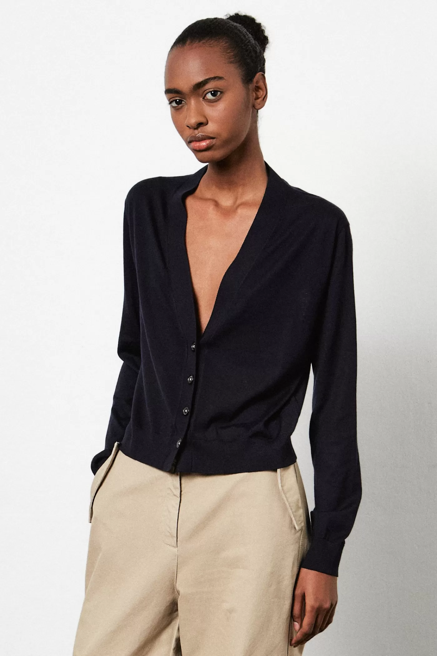 Boxy fit twinset—sweater with dropped shoulders and ribbed edges. Made of extrafine cashmere. G.18 Stocking stitch.