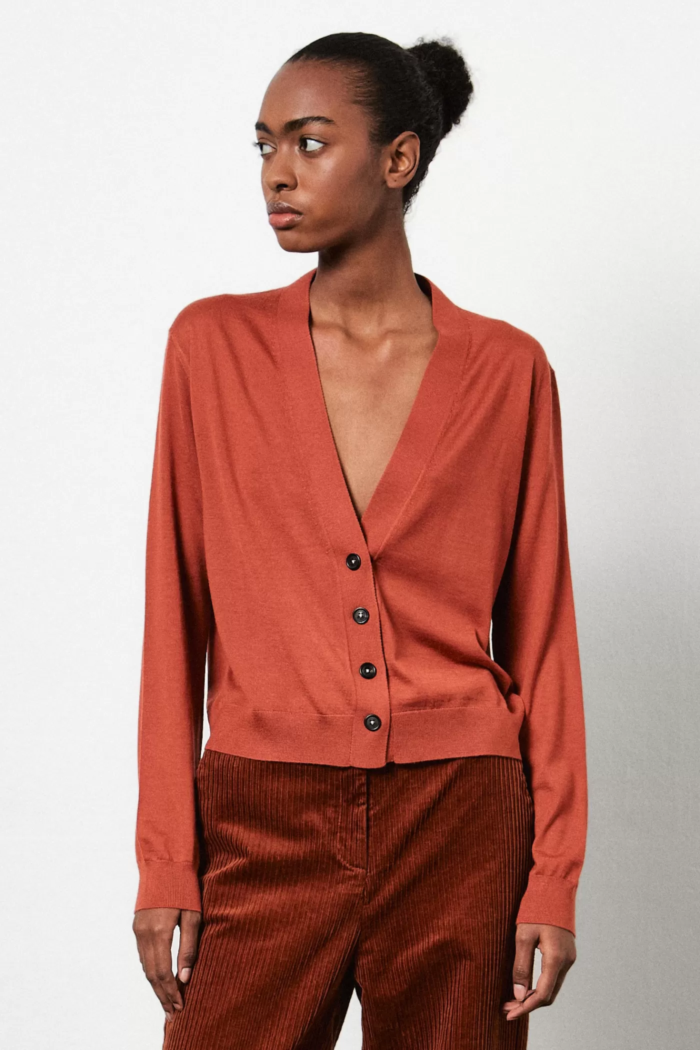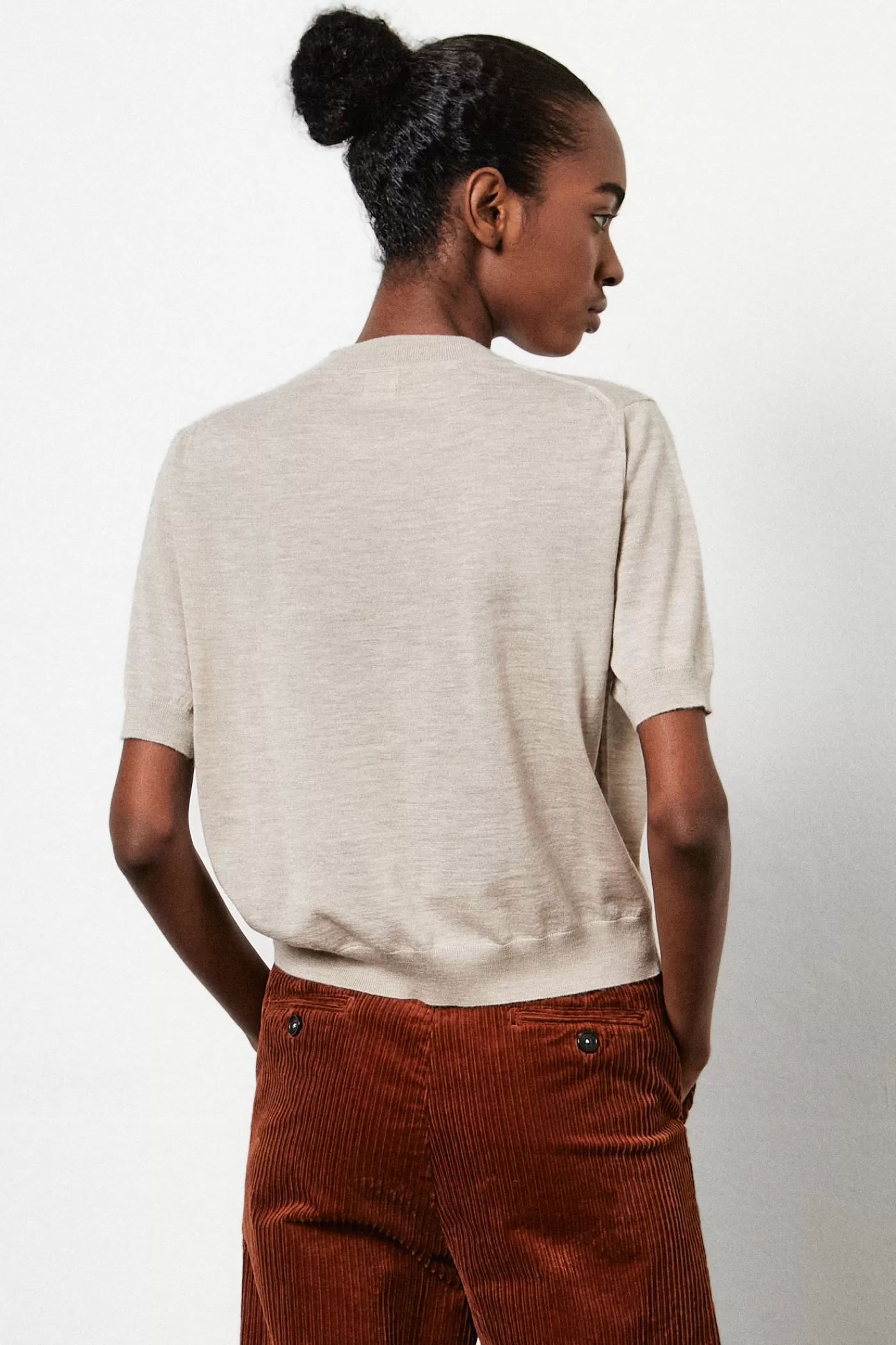 Boxy fit twinset—sweater with dropped shoulders and ribbed edges. Made of extrafine cashmere. G.18 Stocking stitch.
