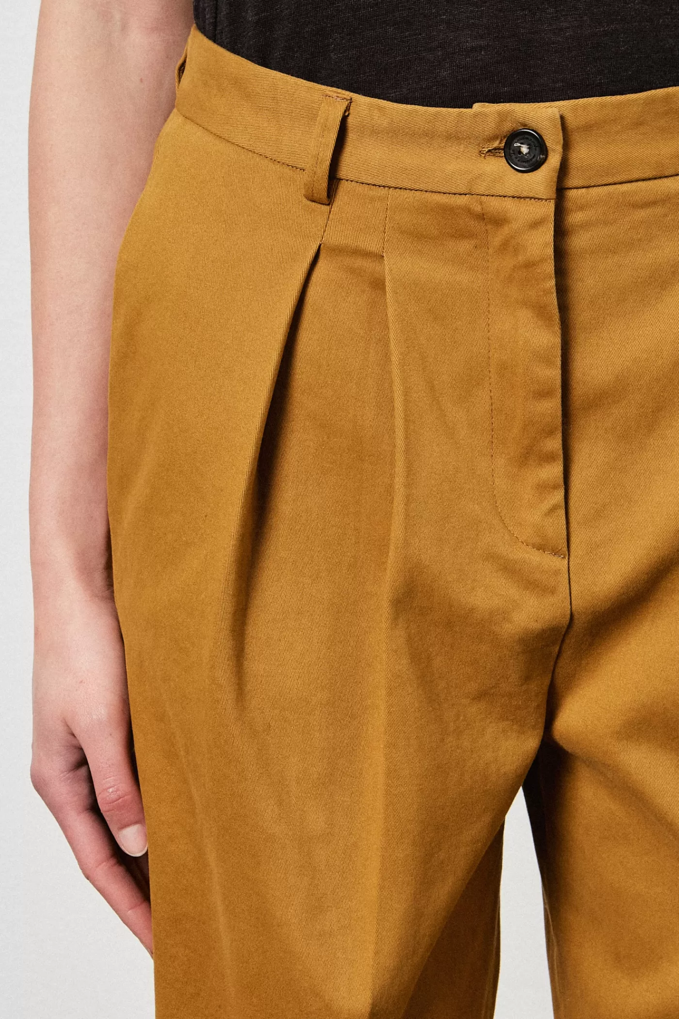 High-waist pants with comfort fit, double pleats, zip and horn button closure, made of comfort cotton.